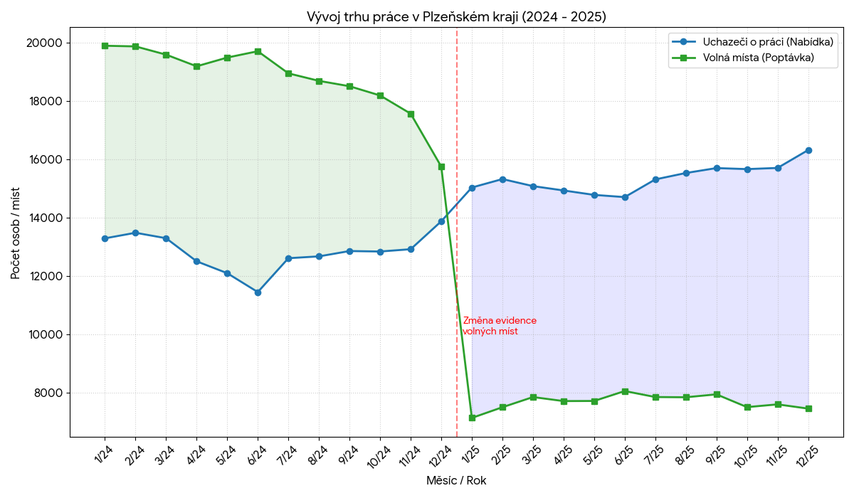 Plzeňský kraj si i přes ochlazení ekonomiky udržel pozici jednoho z regionů s nejnižší nezaměstnaností v České republice. Rok 2025 však představoval výrazný obrat oproti předchozím letům extrémně napjatého trhu práce.